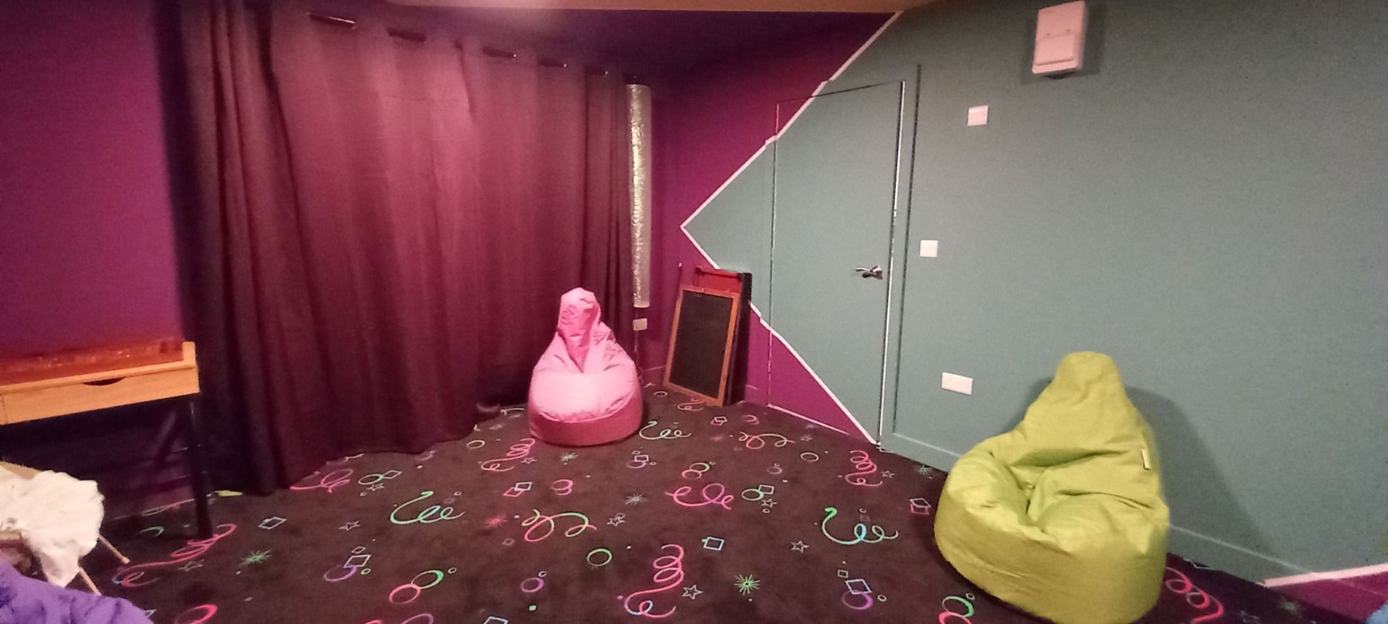 Twin profiling beds, linen provided. Light and airy room, plenty of drawer storage, blue tooth speaker colour changing light. Door leading t