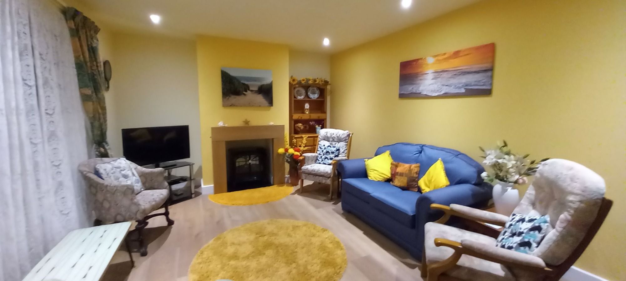 Cosy living room with ample seating, TV and DVD player. Large window to front, east facing so glorious morning sunshine comes beaming in.